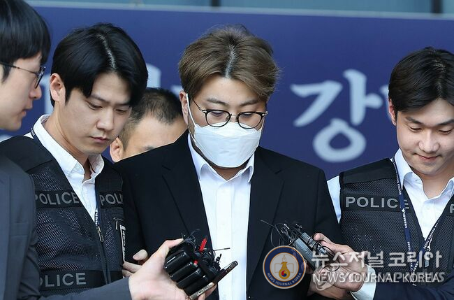 검찰 송치되는 김호중 (ⓒ연합뉴스=뉴스저널코리아) = 음주 뺑소니 혐의를 받는 가수 김호중이 31일 오전 서울 강남구 강남경찰서에서 검찰로 송치되고 있다. 2024.5.31
