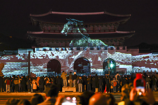 (뉴스저널코리아) 김도영 기자 서울윈터페스타 개막, 서울윈터페스타 통합 개막식이 열린 12일 광화문에서 미디어파사드가 진행되고 있다. 2025.12.12 (끝)