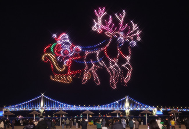 (뉴스저널코리아) 김도영 기자 광안리 '미리 메리크리스마스' 드론쇼 = 21일 부산 수영구 광안리해수욕장 일원에서 '미리 메리크리스마스'를 주제로 한 '광안리 M 드론라이트쇼' 특별공연이 펼쳐지고 있다. 토요일 우천예보로 하루 연기돼 진행된 이날 공연에는 크리스마스 분위기를 한껏 낼 수 있는 산타와 트리, 눈사람 등...