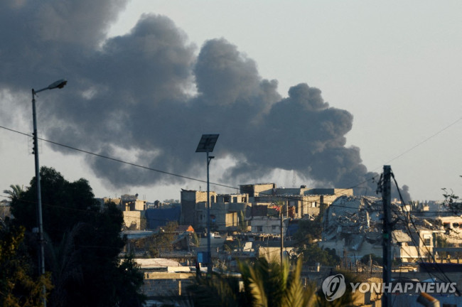 지난달 팔레스타인 가자지구에서 이스라엘의 공습 후 연기가 피어오르고 있다.