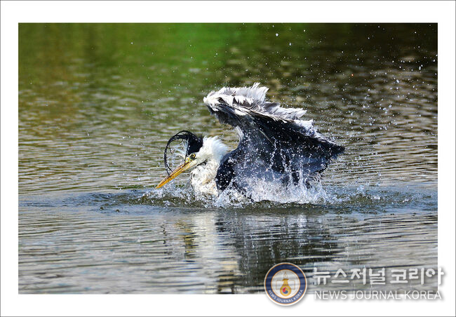 왜가리의 물장구~덥다 더워~!