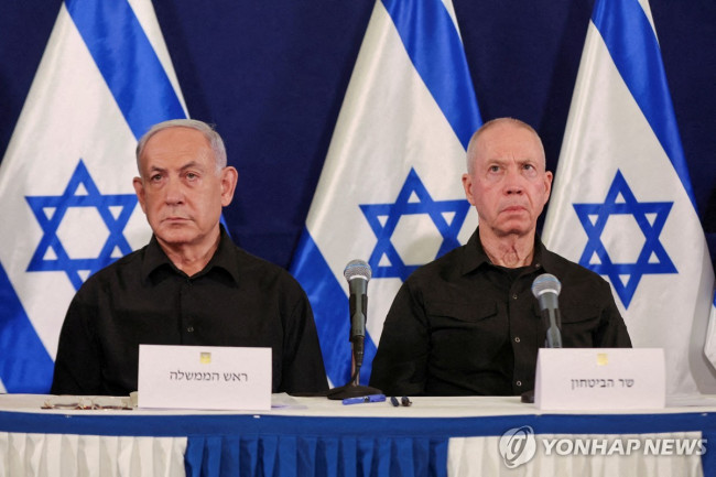 헤즈볼라를 군사력으로 굴복시키겠다는 입장을 고수하는 베냐민 네타냐후 이스라엘 총리와 요아브 갈란트 이스라엘 국방부 장관 [로이터. 재판매 및 DB 금지]