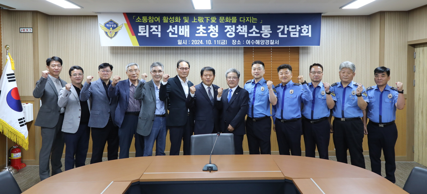 여수해경에 따르면 11일 오전 11시께 경찰서 회의실에서 해양경찰 선배이자 국민의 일원인 된 퇴직 경찰관들을 초청해 현직 경찰관들과 함께 소통하고 교류하는 시간을 가졌다.