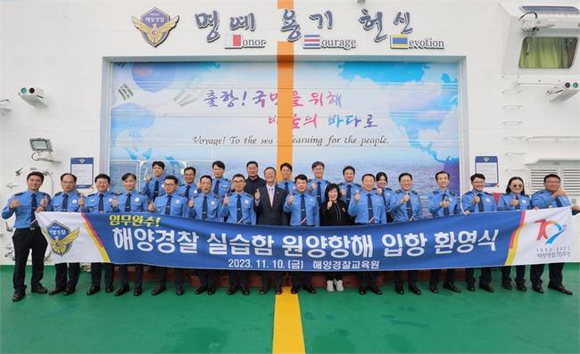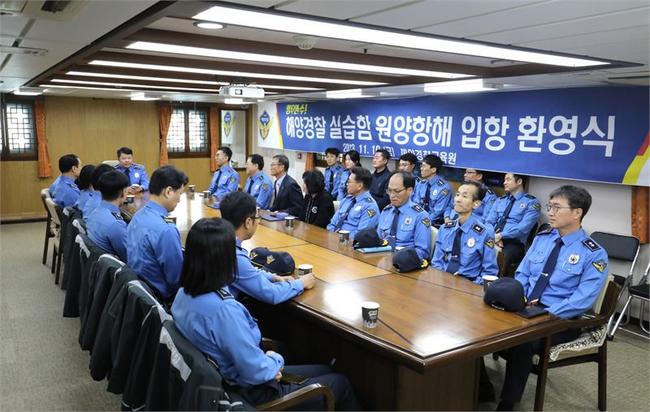 이날 각 과장단을 비롯한 실습단장, 함·부·기관장 등이 참석한 가운데 해양경찰 창설 70주년을 기념해 해외 치안기관과의 교류협력 등 원양항해 실습 임무를 성공적으로 수행한 승조원들을 격려하기 위한 입항환영식을 가졌다.
