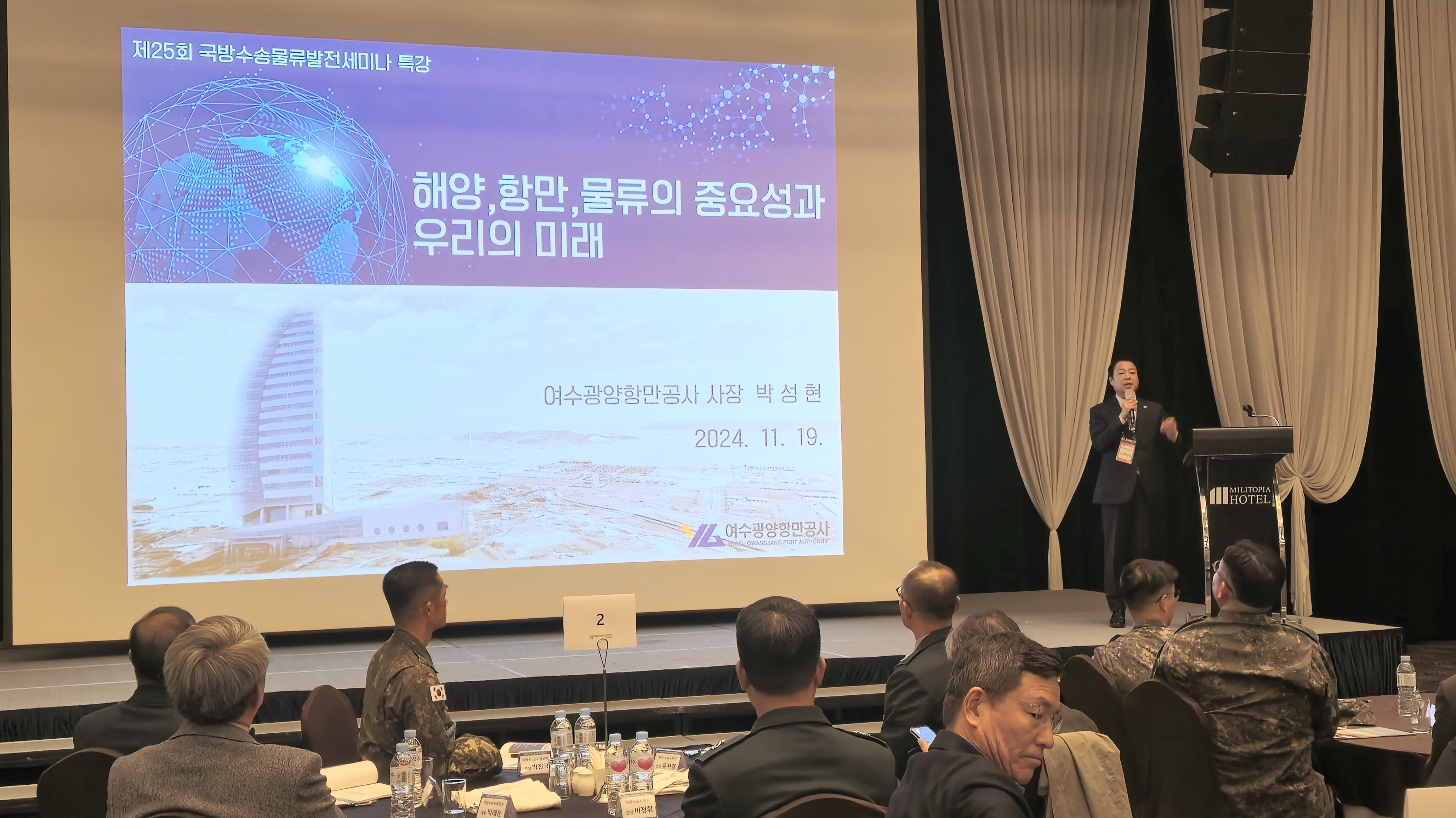 박성현 여수광양항만공사 사장은 지난 11월19일 개최된 제25회 국방수송물류발전세미나에 초청연사로 참석해 “해양, 항만, 물류의 중요성과 우리의 미래” 라는 주제로 해상물류의 중요성을 전파했다고 밝혔다.