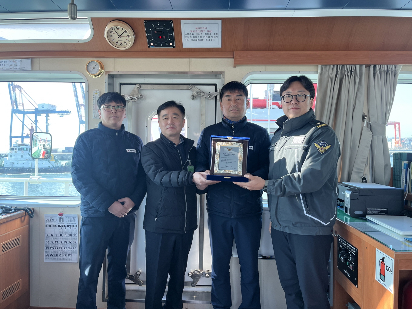 여수해경에 따르면 7일 오전 11시께 광양항 컨테이너 예인선부두에 계류 중인 예인선 세진 101호(364톤)에 방문하여 해양환경관리 모범선박 명패와 부상품을 전달했다.