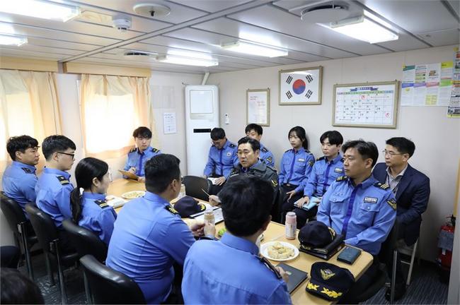 여수해경에 따르면 16일 오전 10시께 화학방제2함 방문을 시작으로 오후까지 소형 경비정 4척을 추가로 방문하며 현장의 직원들과 소통했다.