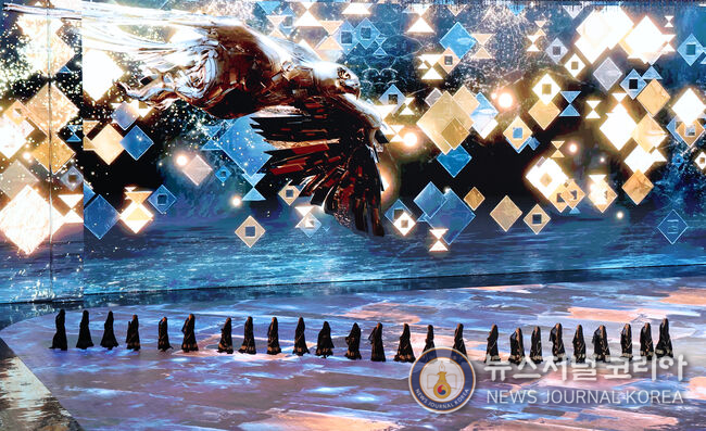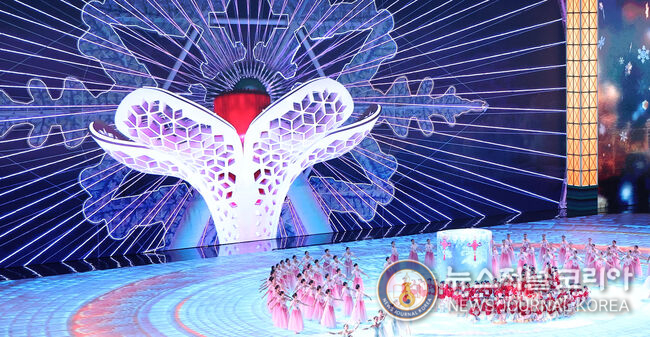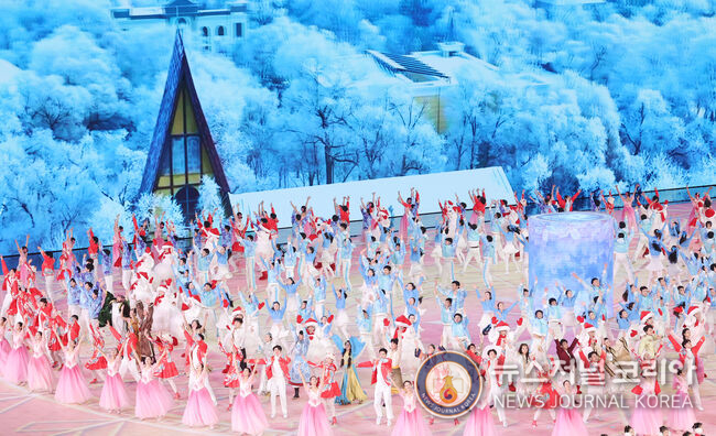 14일 중국 하얼빈 국제 컨벤션 전시 스포츠센터에서 열린 제9회 하얼빈 동계아시안게임 폐회식에서 무용수들이 피날레를 장식하고 있다.