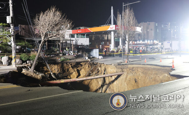 (뉴스저널코리아)김도영 기자 = 24일 오후 6시 29분께 서울 강동구 대명초등학교 인근 사거리에서 싱크홀(땅 꺼짐) 사고가 발생했다. 소방 당국에 따르면 이 사고로 인해 1명이 다쳤다. 강동구청은 안전안내문자를 통해 "사거리 구간 양방향 전면 교통통제 중"이라며 "교통정보를 미리 확인하고 우회 도로를 이용해달라"고 당부했다. 2025.3.24
