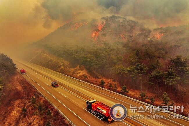 (뉴스저널코리아) 김도영 기자 = 경북 의성군에서 연일 확산하는 대형 산불이 발생 사흘째인 24일 강풍을 타고 이웃한 안동까지 번지면서 산림 당국에 비상이 걸렸다.