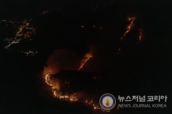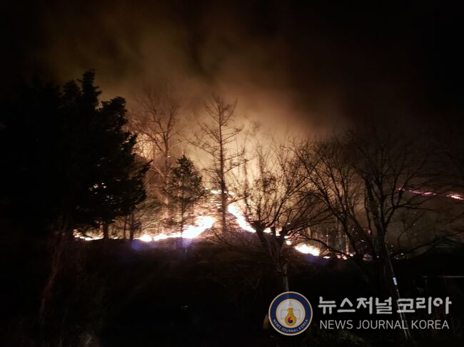 (뉴스저널코리아) 김도영 기자 = 전북 무주군의 한 주택에서 난 불이 산불로 번져 확산하고 있다.
