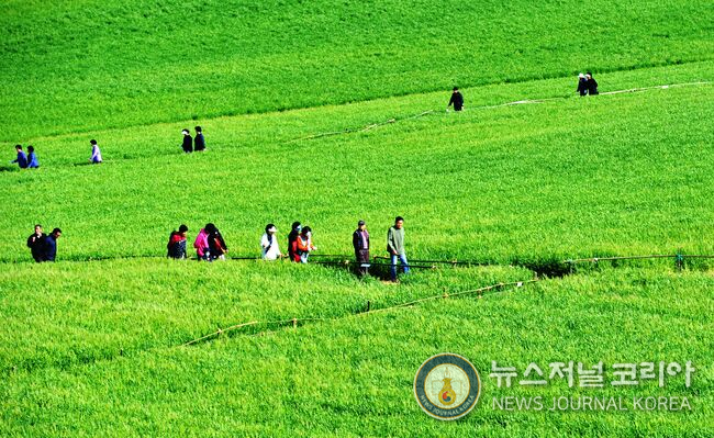 초록빛으로 물든 고창학원농장을 찾아 산책하는 사람들(뉴스저널코리아 자료사진)