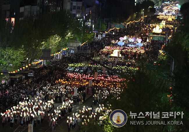 불기 2569년(2025년) 부처님오신날(5월 5일)을 앞두고 26일 연등 행렬이 흥인지문(동대문)을 출발해 종로를 지나 조계사로 향하고 있다(연합뉴스=뉴스저널코리아). 2025.4.26