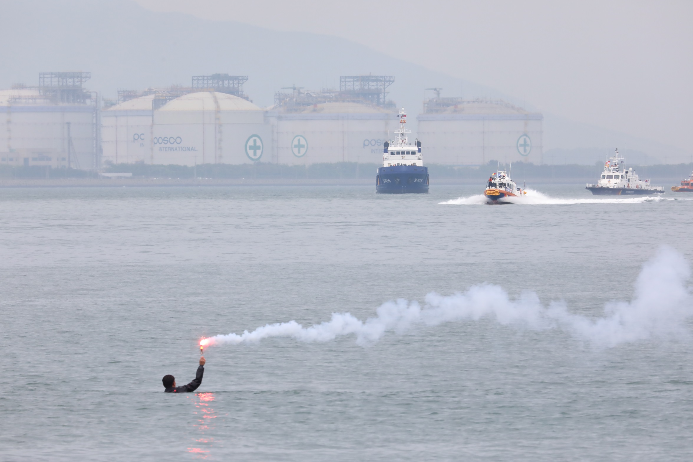 여수해양경찰서(서장 최경근)는 “복합 해양사고 발생 시 신속한 사고대응을 위해 인명구조 수난 대비 훈련과 위험·유해물질(HNS) 사고 훈련을 민·관 합동으로 진행했다”고 밝혔다.