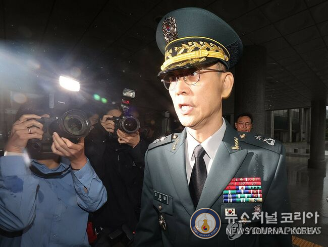 김용대 드론작전사령관이 17일 내란특검 사무실이 마련된 서울 서초구 서울고검에 조사를 받기 위해 출석하고 있다. 2025.7.17 (연합뉴스 ⓒ,뉴스저널코리아)