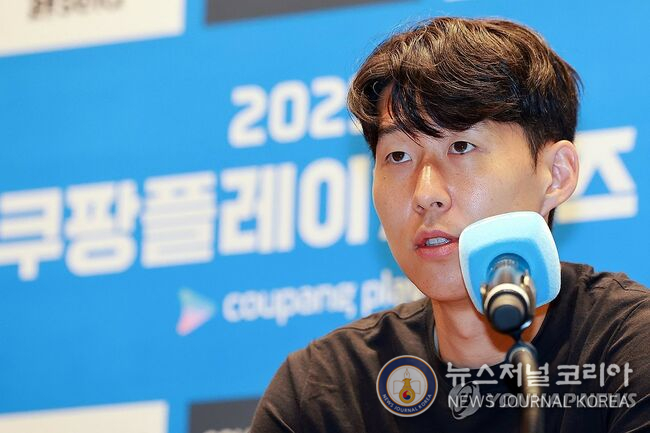 잉글랜드 프로축구 토트넘 손흥민이 2일 서울 영등포구 IFC 더포럼에서 열린 2025 쿠팡플레이 시리즈 기자회견에 참석해 취재진 질문에 답하고 있다.