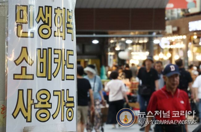 민생회복 소비쿠폰 사용 가능 안내문 붙은 전통시장 [ⓒ연합뉴스=뉴스저널코리아]