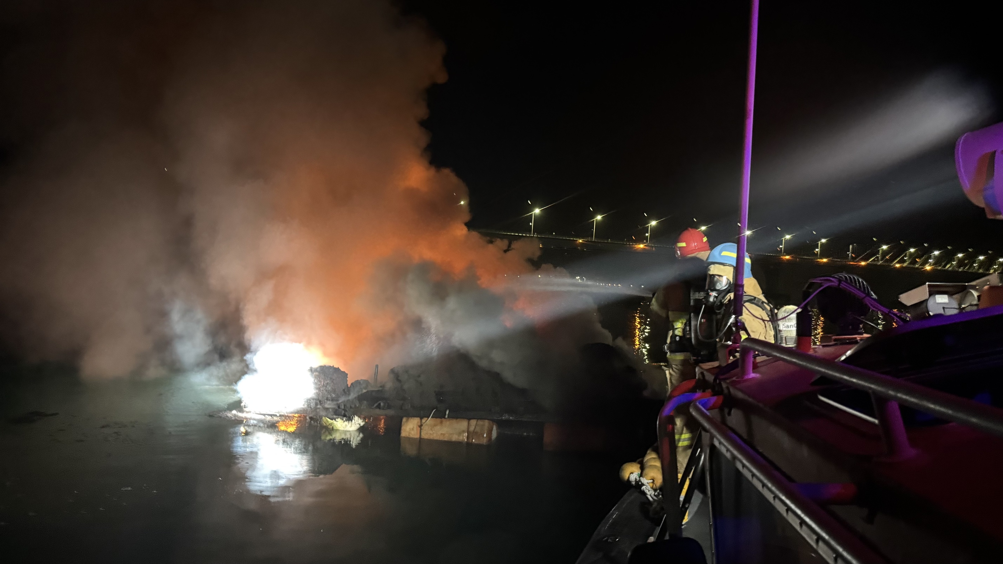 화재 진압에는 해경 함정 4척과, 소방차 12대, 민간 어선 6척이 동원됐다. 해경은 현장이 육상 접근이 어려운 해상이라는 점을 고려해 민간 어선을 섭외해 소방대원을 현장에 이송, 합동으로 진화 작업을 벌여 확산을 막았다.