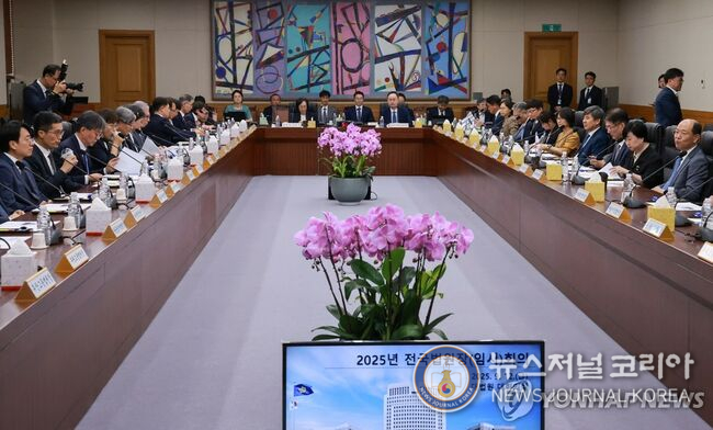전국법원장회의 개최 (ⓒ연합뉴스=뉴스저널코리아) = 각급 법원장들이 12일 서울 서초구 대법원에서 열린 전국법원장회의 임시회의에 참석해 있다. 2025.9.12