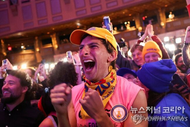 맘다니 당선에 기뻐하는 지지자들 [로이터 연합뉴스=뉴스저널코리아. 재판매 및 DB 금지]