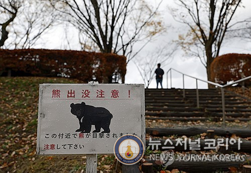 곰 출몰 주의 일본 아키타현 한 공원에 설치된 곰 출몰 주의 안내판(epa=연합뉴스,뉴스저널코리아)