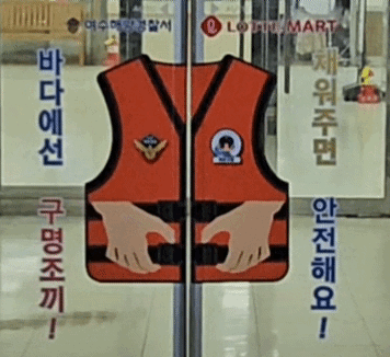 구명조끼 착용 캠페인은 안전벨트 착용률 83% 대비 미비한 14%의 구명조끼 착용률을 높이기 위해 국민 일상에 자연스럽게 인식하고 실천될 수 있도록 마트, 은행, 교육기관 등 공공장소 출입구(자동문)에 구명조끼 스티커를 부착하여 의미를 전달한다.
