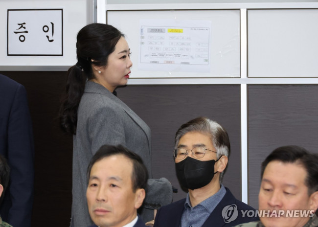 (사진자료=연합뉴스 뉴스저널코리아) = 노상원 전 정보사령관이 자주 찾은 것으로 알려진 무속인 '비단 아씨' 이선진 씨가 4일 국회에서 열린 '윤석열 정부의 비상계엄 선포를 통한 내란 혐의 진상규명 국정조사 특별위원회' 청문회에 출석하고 있다. 2025.2.4