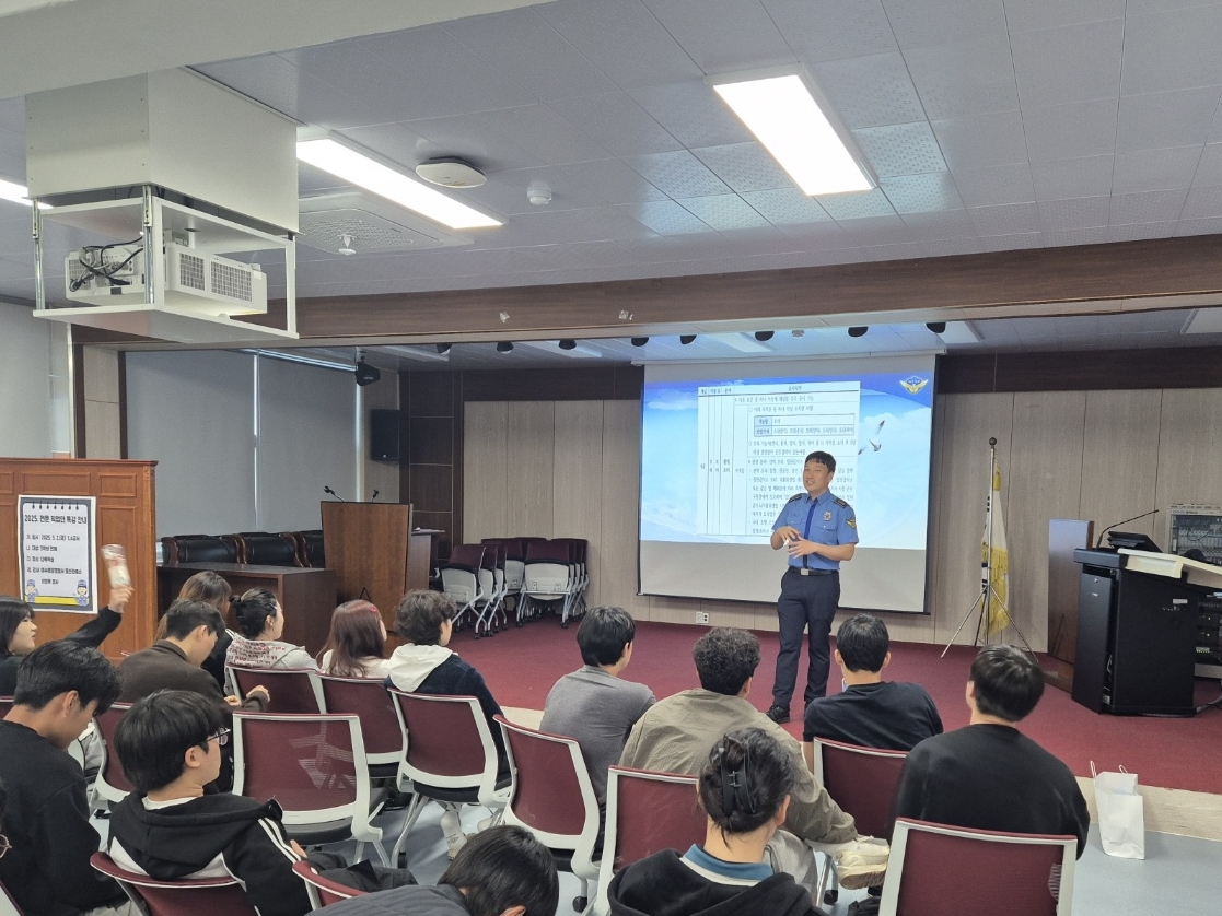 여수해양경찰서 돌산파출소(소장 추상현)가 지역사회 공헌과 청소년 안전교육의 일환으로 여수해양과학고등학교를 대상으로 한 진로특강을 본격 시작했다.