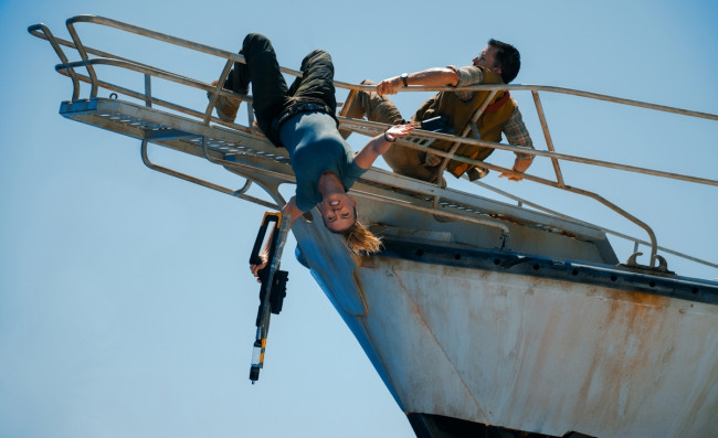 마블 스튜디오 히어로물 '어벤져스' 시리즈에서 블랙 위도우로 활약한 조핸슨의 액션도 눈길을 끈다. 아슬아슬하게 배 난간에 매달려 바다 공룡을 향해 혈액 채취용 총을 쏘고 밧줄 하나에 의지해 절벽을 타는 모습을 볼 수 있다. 그러나 기존 히어로물에서의 모습과는 달리 싸움보다는 추격전에 집중해 극 전체의 서스펜스를 이끄는 역할을 한다.