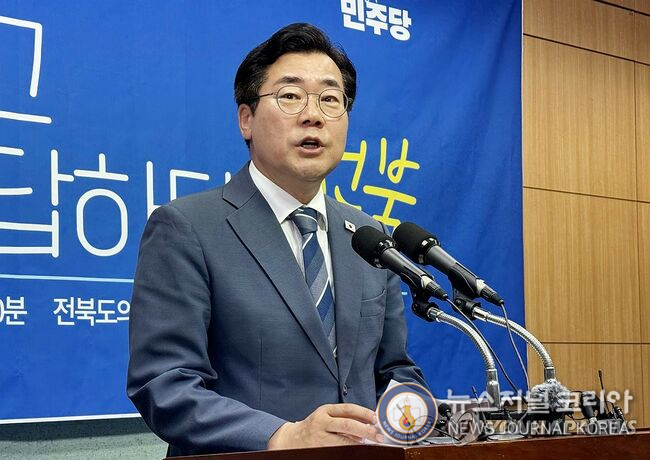 더불어민주당 당권 주자인 박찬대 의원이 8일 전북특별자치도의회 기자회견에서 발언하고 있다. 2025.7.8