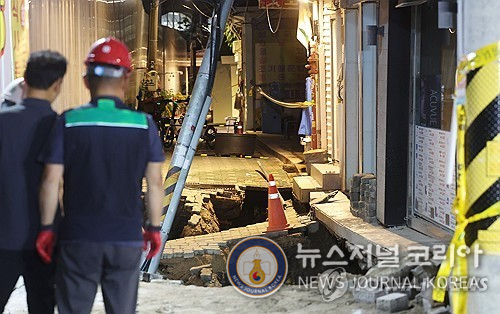 아울러 오후 11시 44분께 인근 주민들에게 지반 침하 사고로 전기, 수도, 가스 공급이 중단될 수 있으니 대비해달라는 내용의 안전문자를 추가로 보냈다.