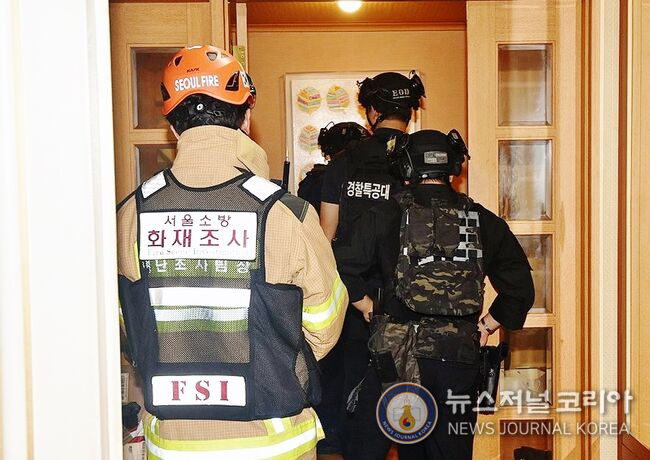 지난 21일 인천 송도국제도시 아파트에서 60대 남성이 아들을 사제총기로 살해한 뒤 체포됐다. 경찰이 21일 집에 폭발물을 설치했다는 피의자 진술을 토대로 서울 도봉구 피의자 자택을 수색하고 있다. 2025.7.23 [서울소방재난본부 제공.DB 금지]