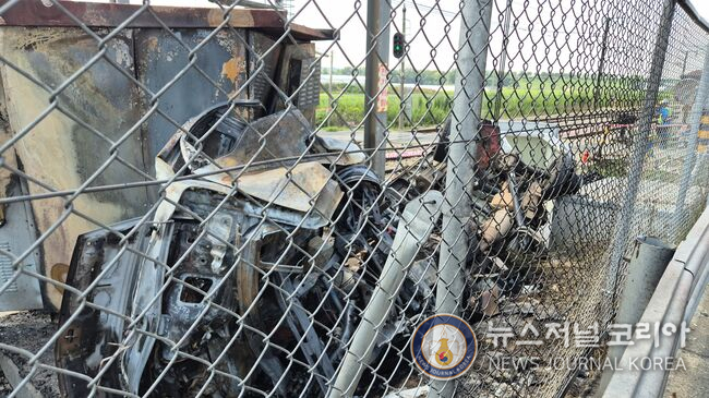 사고로 불탄 화물탑차(사진=뉴스저널 오관영 기자)무단전재 및 DB금지.