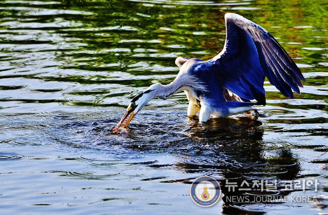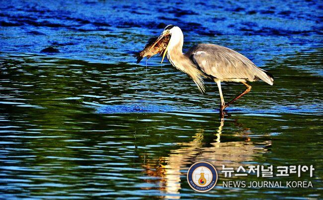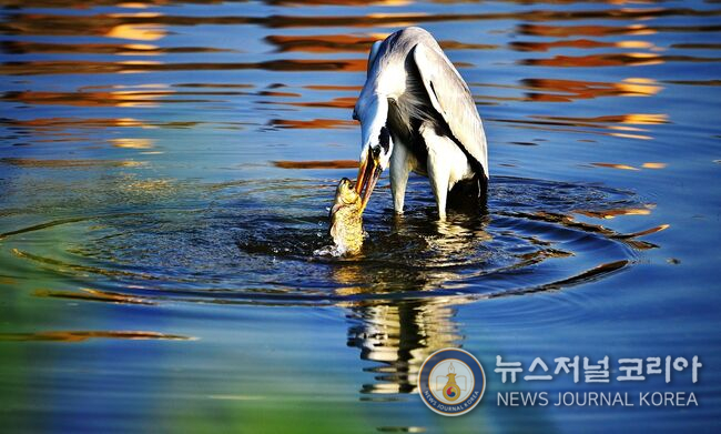 왜가리의 물고기 사냥 순간(사진=뉴스저널코리아 김도영 기자) 무단전재 및 DB금지.