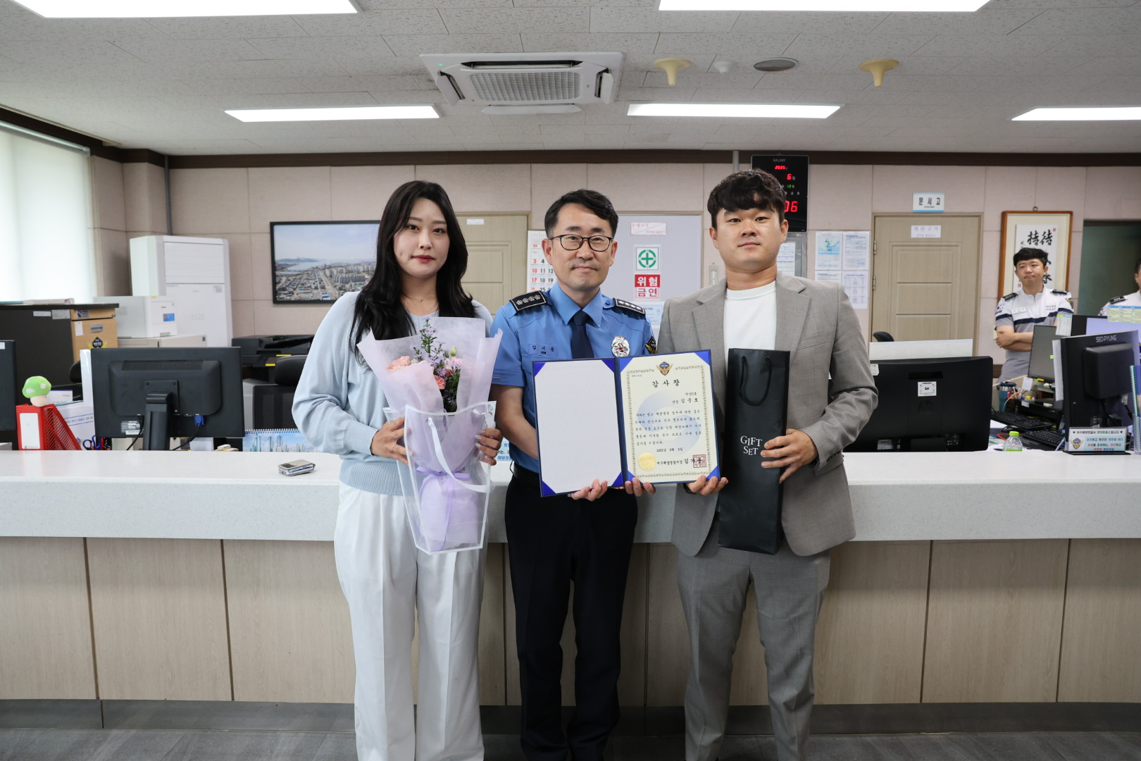 여수해양경찰서(서장 김기용)는 “지난 7월 집중호우 기간 중 광양항 내 발생한 해양쓰레기 수거에 적극적으로 협조한 민간인 2명에게 오늘 6일 감사장을 수여하며 감사의 뜻을 전했다”고 밝혔다.