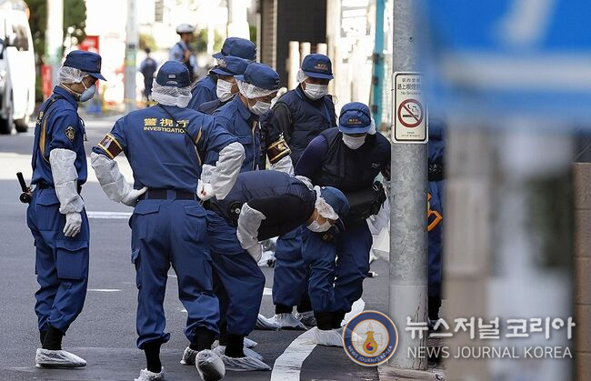 한국인 여성 피습 사건 조사하는 일본 경찰 (도쿄 교도=연합뉴스,뉴스저널코리아) 일본 경찰이 1일 도쿄 세타가야구에서 한국인 여성이 피를 흘린 채 쓰러져 있던 장소를 조사하고 있다. 2025.9.1