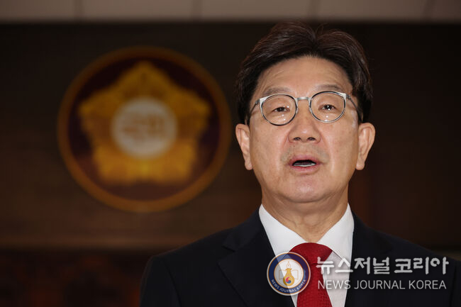 국민의힘 권성동 의원이 11일 서울 여의도 국회 본회의장을 나서 입장을 밝히고 있다. 2025.9.11