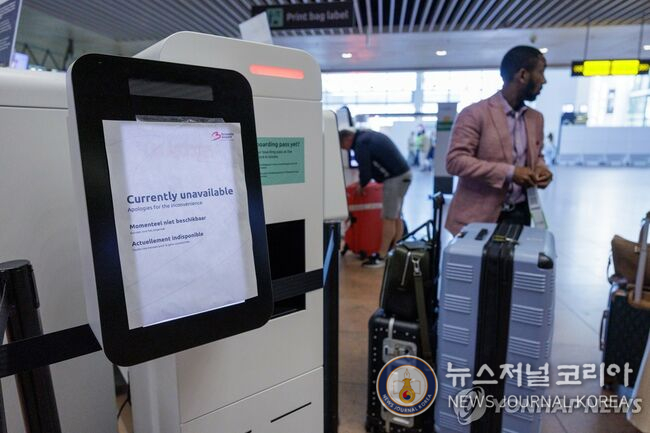 키오스크 고장 안내문 붙인 브뤼셀 공항 [EPA 연합뉴스,뉴스저널코리아. 재판매 및 DB 금지]