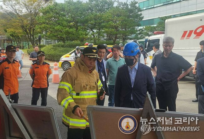 최주원 대전경찰청장이 27일 대전 유성구 국가정보자원관리원을 찾아 화재 상황을 점검하고 있다. 2025.9.27 [대전경찰청 제공. 재판매 및 DB 금지]