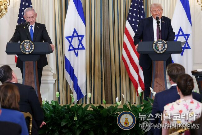 공동 기자회견하는 트럼프 대통령과 네타냐후 총리 [로이터 연합뉴스=뉴스저널코리아 자료사진]