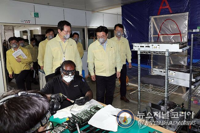 윤호중 행정안전부 장관이 8일 국가정보자원관리원 대전센터를 방문하여 화재로 서비스가 중단된 행정정보시스템 복구현장을 점검하고 있다. 2025.10.8 [행정안전부 제공. 재판매 및 DB 금지]