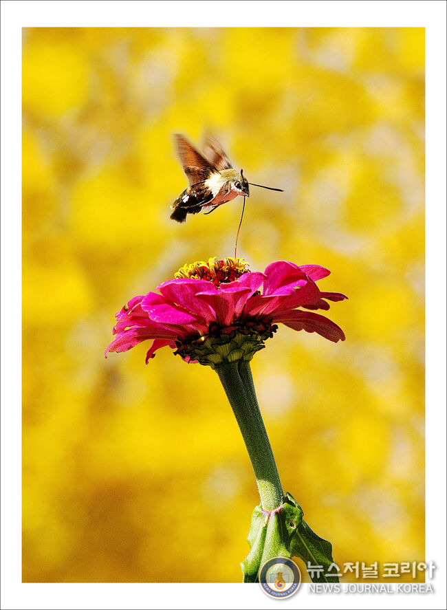 가을 愛, 박각시 나방과 백일홍의 베푸는 사랑(사진 뉴스저널코리아 김도영 기자) 무단전재 및 DB금지.